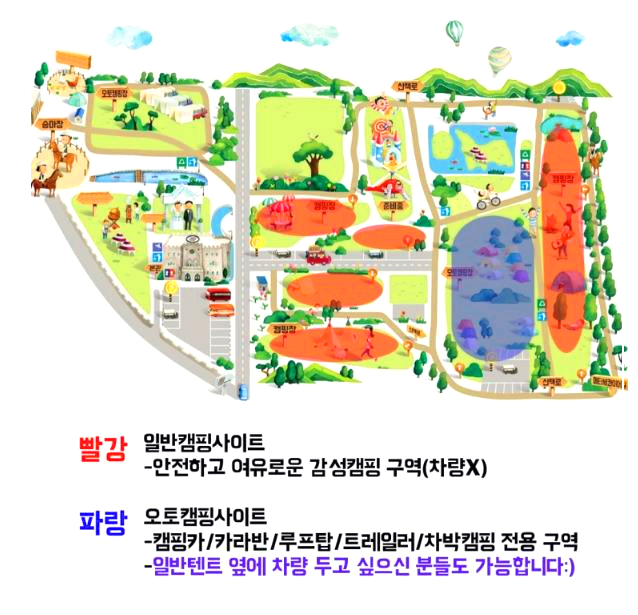 차는 주차할 수 없으며, 안전하고 감성 캠핑이 가는 한 사이트입니다.