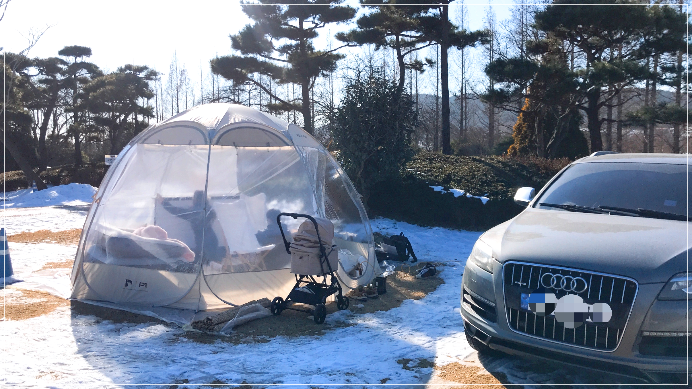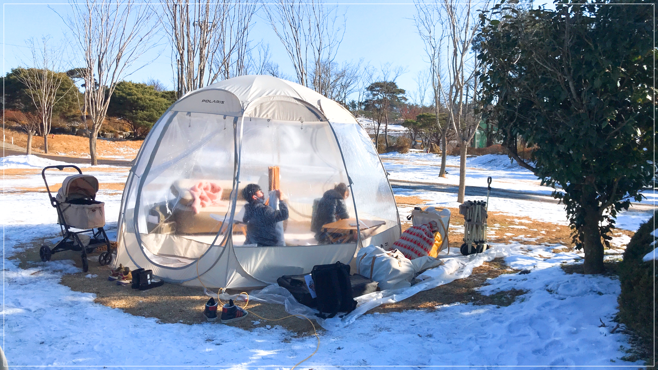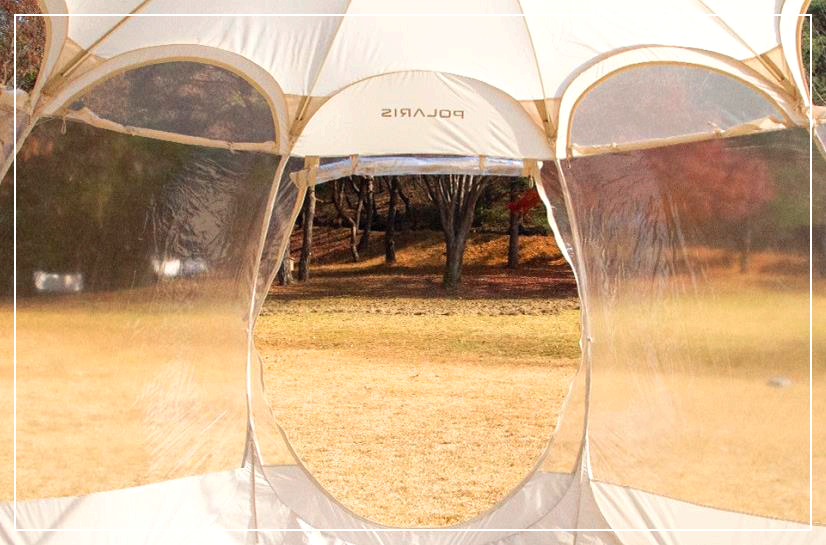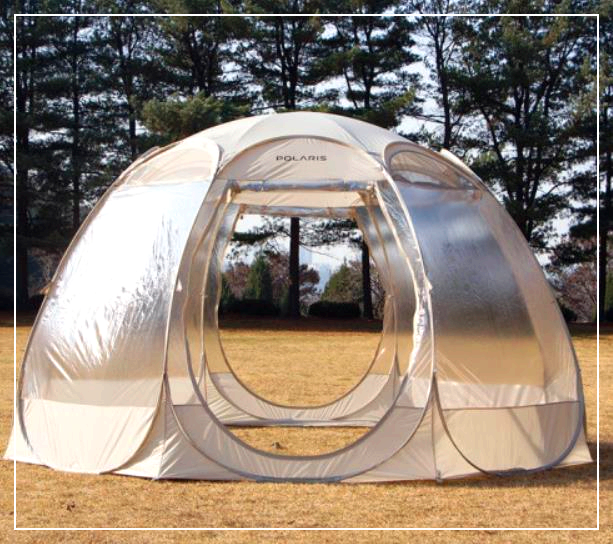 폴라리스 P1 투명 쉘터는 밖에서 봤을 때도 돔 형태의 예쁜 쉘터로