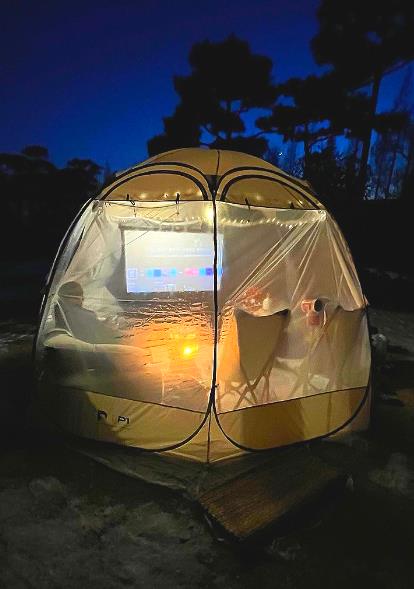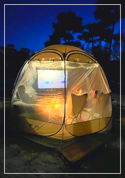 폴라리스 P1 텐트는 360도 투명해서 밤에 밖에서 보는 모습도 너무 아름다운