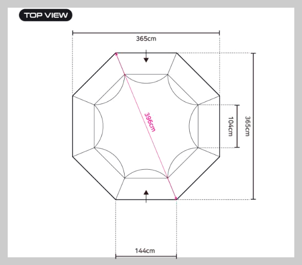 그라운드 시트 사이즈는 340(L) X 340(W) cm입니다.