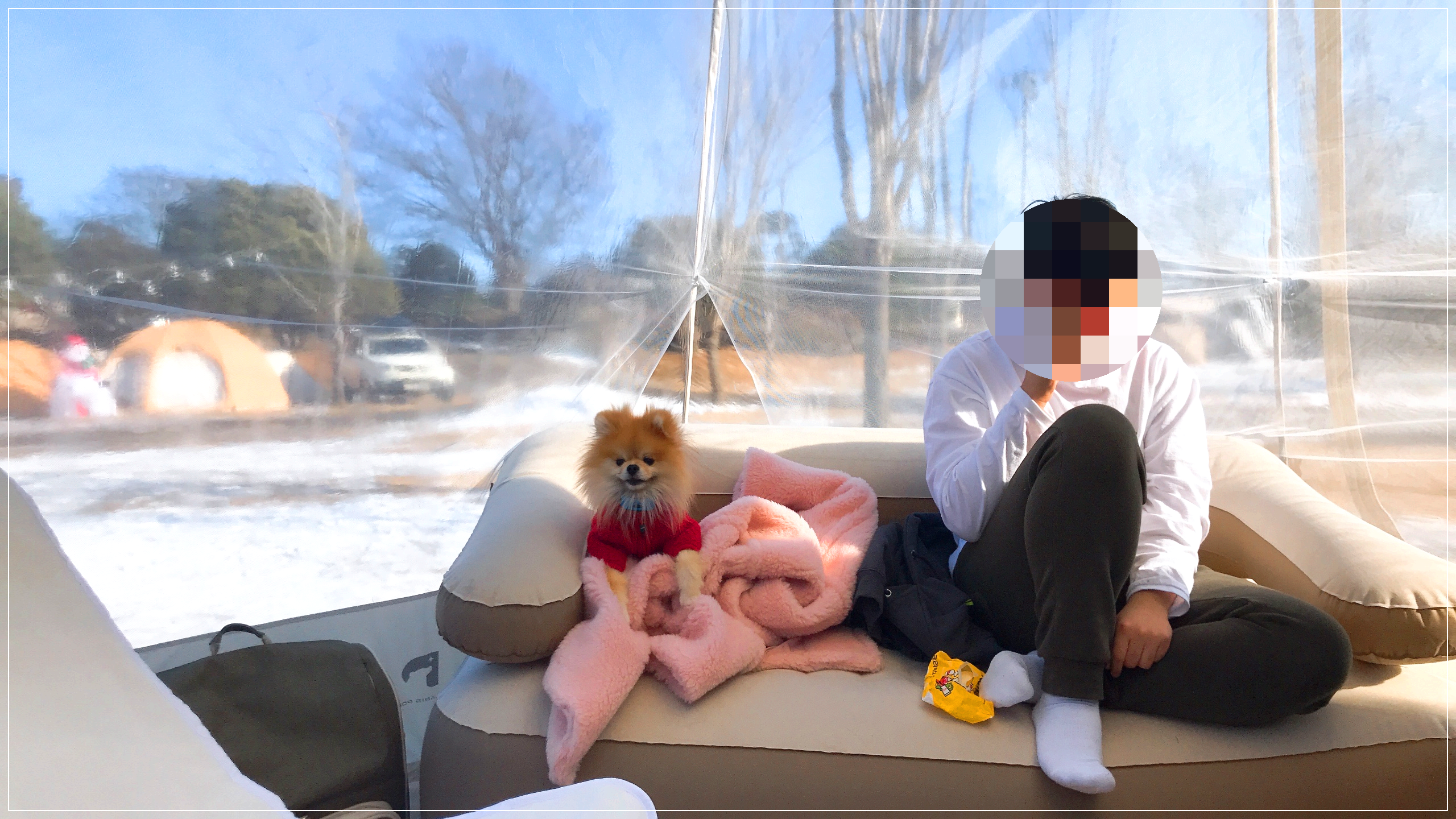 투명 쉘터로 사용하면서 텐트로도 사용이 가능해졌습니다.