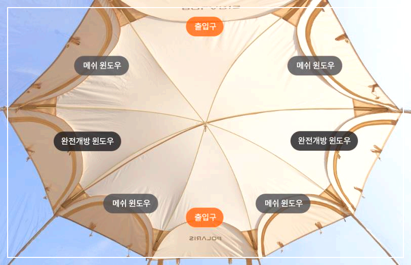 폴라리스 P1 투명 쉘터는 상단 4면이 메쉬 창문으로 제작되어